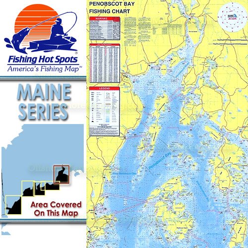 Tips and Techniques for Featured Species, GPS Information, 9 Access Locations Indicated, 42 Proven Fishing Areas Marked, Area Marina Information, Artificial Reefs Indicated with GPS (if applicable), Covers coast surrounding Penobscot Bay and the Penobscot River north to Frankfort.