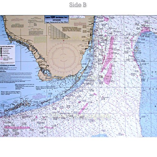 CCKW32 Offshore chart, side A, from just north of Cape Canaveral to Boca Raton, FL east to Southwest Point on the Grand Bahama Island. Side B, from Boca Raton to Key West, south to Dog Rocks east to Great Bahama Bank. For a enlargement of the Bimini Islan
